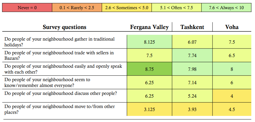“Neighbourhoodism” is about taking care of your neighbours, knowing and visiting them on special occasions, which are a lot in Uzbekistan, especially in mahallas (countryside villages). There is a quote in Uzbekistan which says, “Seven neighbours/villages for one child’s growth”. This means that because of the closeness and warm relations of neighbours, children usually treat elderly people very respectfully and expect to learn from them the customs. There is an invisible responsibility of elderly people to teach youth about human relations, especially when youth make mistakes or mistreat someone. Mr Muhammadibrokhimov dived deeper and presented how these customs differ across three regions (see Figure 2).