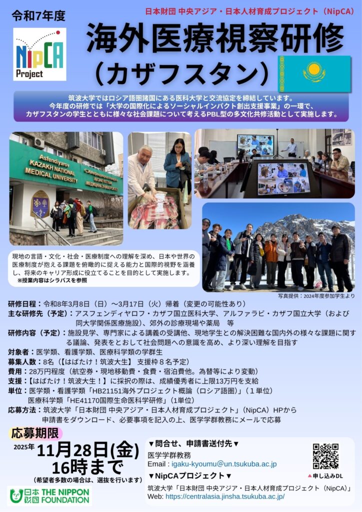 ◆視察先(予定):アスフェンディヤロフ・カザフ国立医科大学、アルファラビ・カザフ国立大学(および同大学関係医療施設)、郊外の診療現場や薬局、等