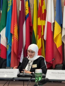 オープニングパネルセッションでは、ノルウェー大使スヴェンセン・エレン氏の司会のもと、ファランギスさんは著名な平和リーダーや外交官と共にパネルスピーカーとして参加し、WPS議題の進展と、その多様な状況での実施について振り返りました。ファランギスさんは、ジャーナリストおよび研究者としての経験に基づき、「女性のリーダーシップへの投資は任意ではなく、不可欠である」と強調しました。彼女のスピーチでは、平和構築プロセスをより可視化し、身近で包摂的にするうえで、メディア、ストーリーテリング、学術の役割が強調されました。「平和は単に会議の場で交渉されるものではなく、地域社会でリーダーシップを発揮し、組織し、変化を生み出す女性たちによって日々築かれるものであり、そうした物語を伝えることが非常に重要です」と彼女は語りました。彼女の発言は、参加者同士に、コミュニケーションや共感、可視化が、平和構築を社会全体の共有された責任に変える方法について、活発な対話を促しました。