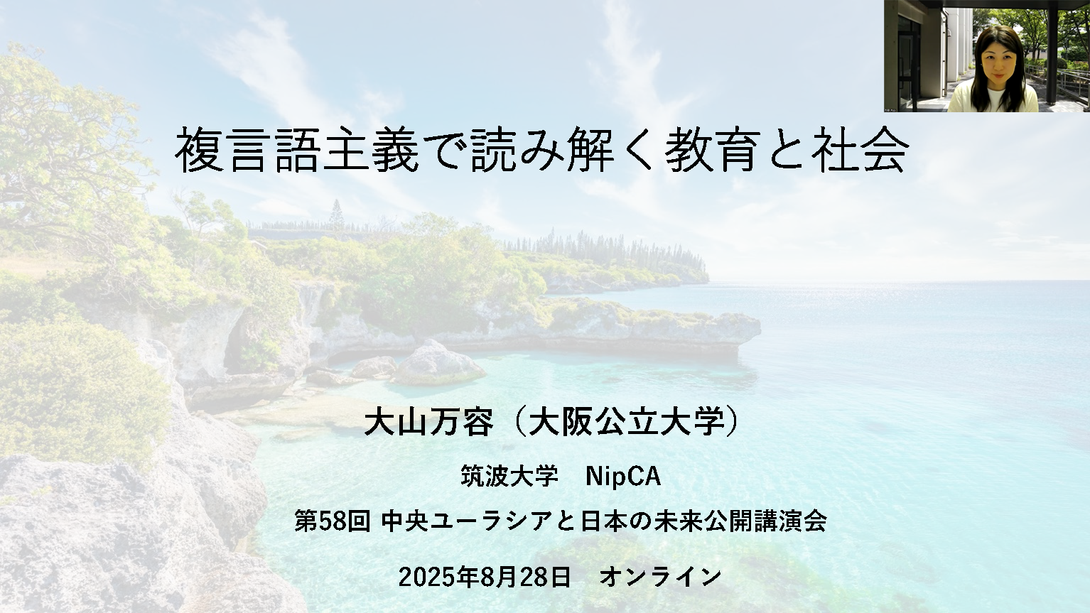 2025年8月28日(木)、第58回「中央ユーラシアと日本の未来」公開講演会を開催しました。大阪公立大学文学部准教授の大山万容氏を講師にお招きし、「複言語主義で読み解く教育と社会」と題する講演をしていただきました。
