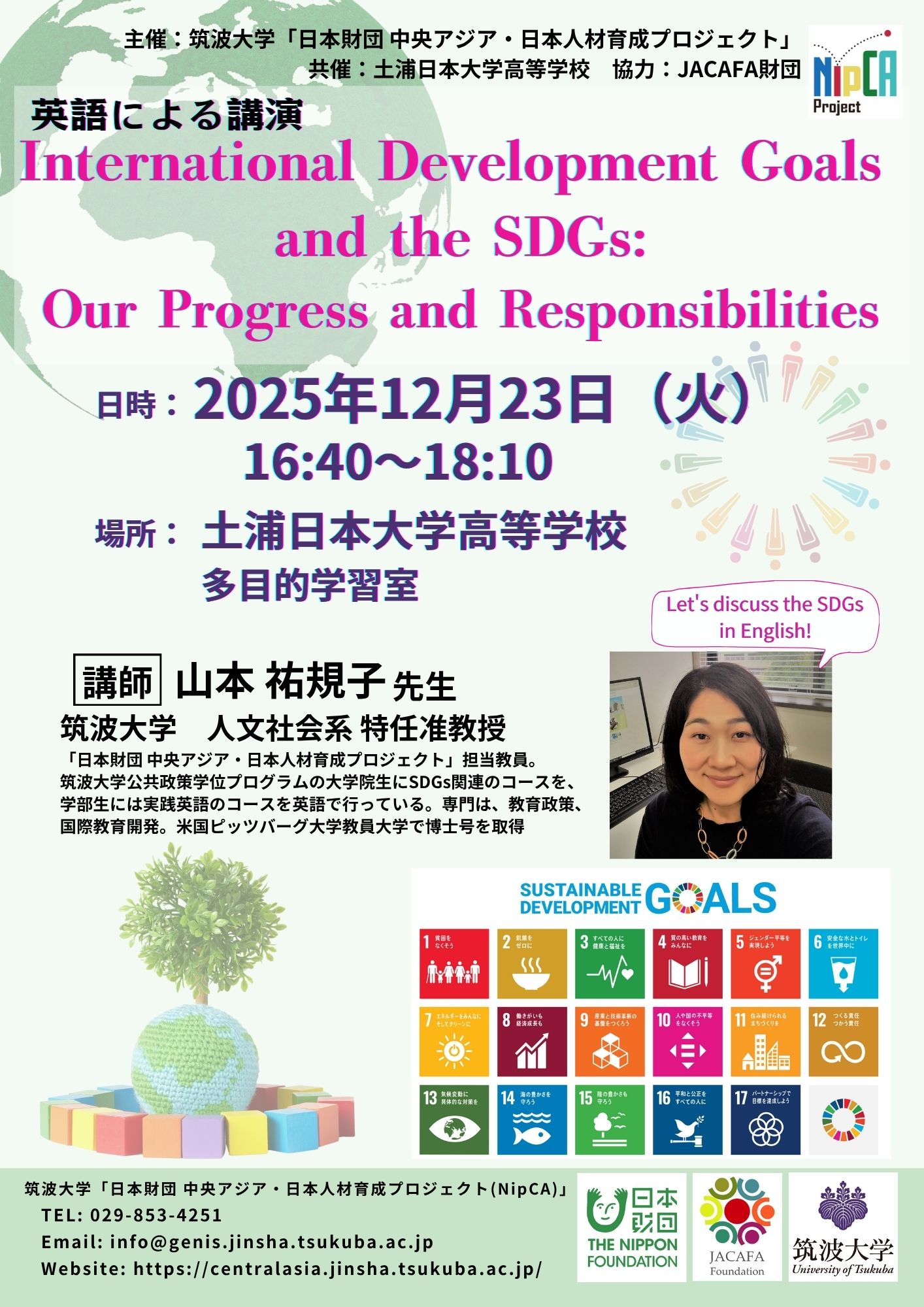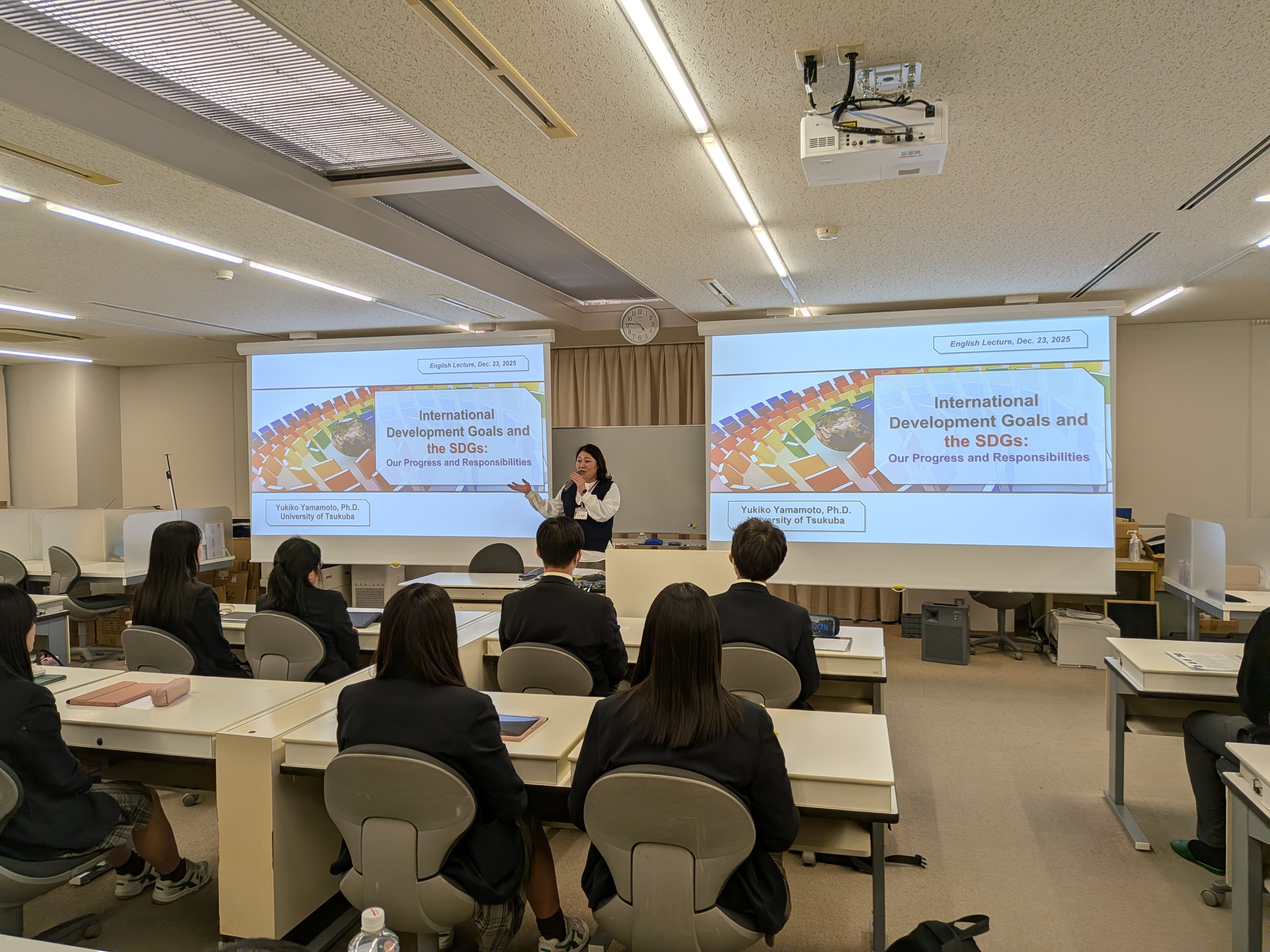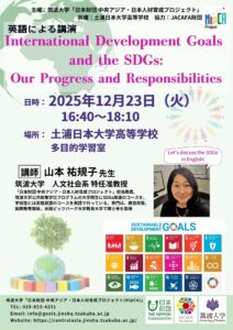 今年度は2025年12月23日(火)に土浦日本大学高等学校にて、SDGsに関する英語講演会が開催されました。