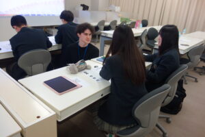 講義には特別進学コースの生徒16名が参加、国際開発目標の概要の他、日本のここ数年の取り組みの課題について講演を行いました。 また、講演中はワークショップを行い、生徒同士でディスカッションや英語で発表する機会を持ちました。